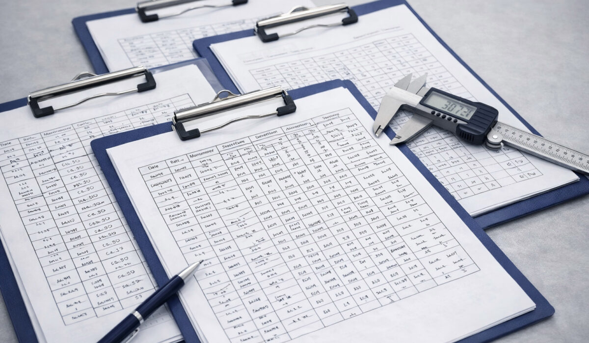 Inspection results, sampling data, test photos or measurements, and batch traceability.